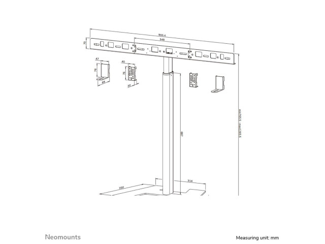 * Der Neomounts AV80-500BL Bodenständer ist wirklich universell einsetzbar und unterstützt jede Videoleiste, die in den Bereich der Halterung passt (siehe Strichzeichnung). Er ist speziell für die folgenden Modelle optimiert: