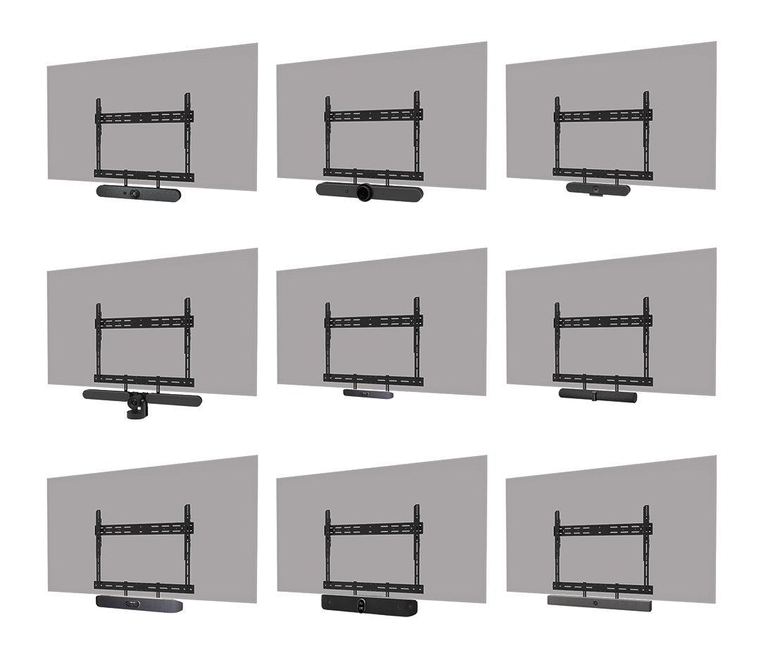 Das AV30-500BL ist mit den meisten Videobars*, PTZ-Kameras und Soundbars kompatibel, darunter auch Logitech Rally-Lautsprecher, und gewährleistet so eine breite Anwendbarkeit. Die Befestigungslöcher ermöglichen Variationen in Breite und Höhe, während der VESA-Rahmen sowohl in der Höhe als auch in der Breite (200/400/600/800) verstellbar ist. Das Kit kann an Wand-, Boden-, Tisch- oder Deckenhalterungen verwendet werden. Trotz seiner Vielseitigkeit ist die Installation dank des Lineals geführten Ausrichtung für eine nahtlose Passform ganz einfach.