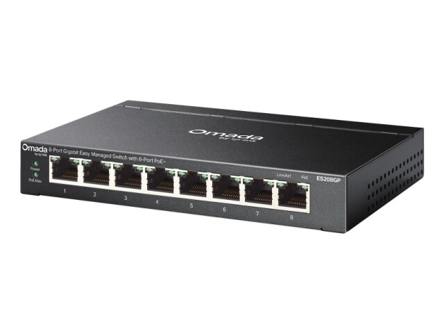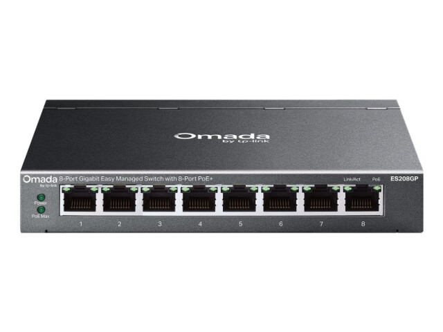 TP-Link Omada ES208GP Netzwerk-Switch Managed L2 Gigabit Ethernet (10/100/1000) Power over Ethernet (PoE) DIN rail Schwarz