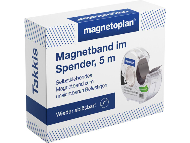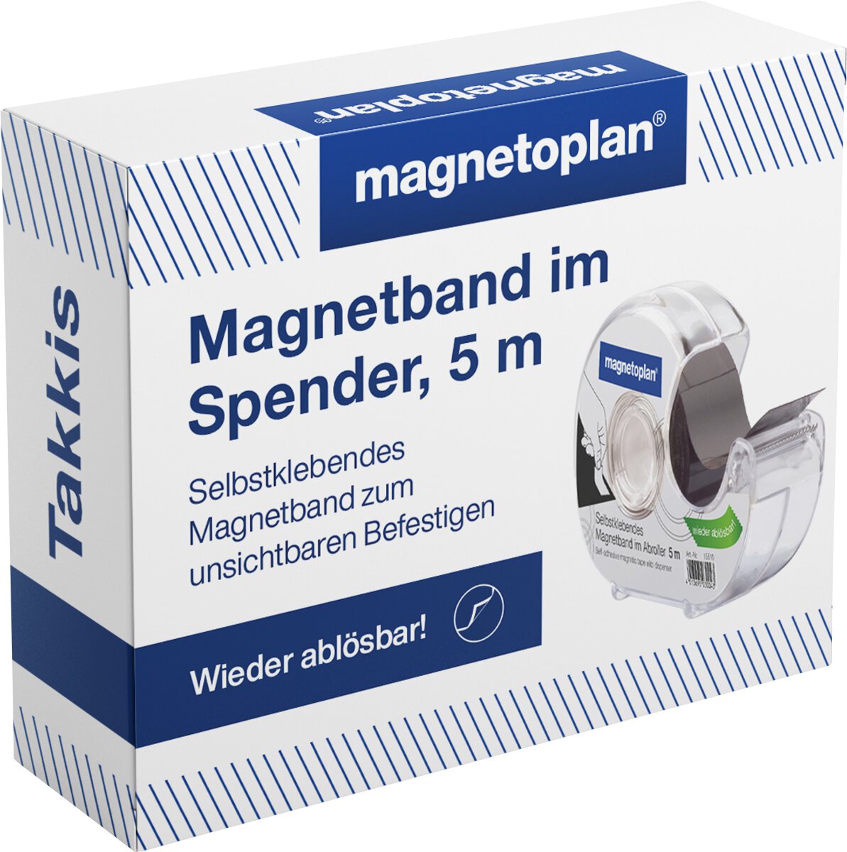 praktischer Abroller mit 5 Meter Magnetband, einseitig selbstklebend