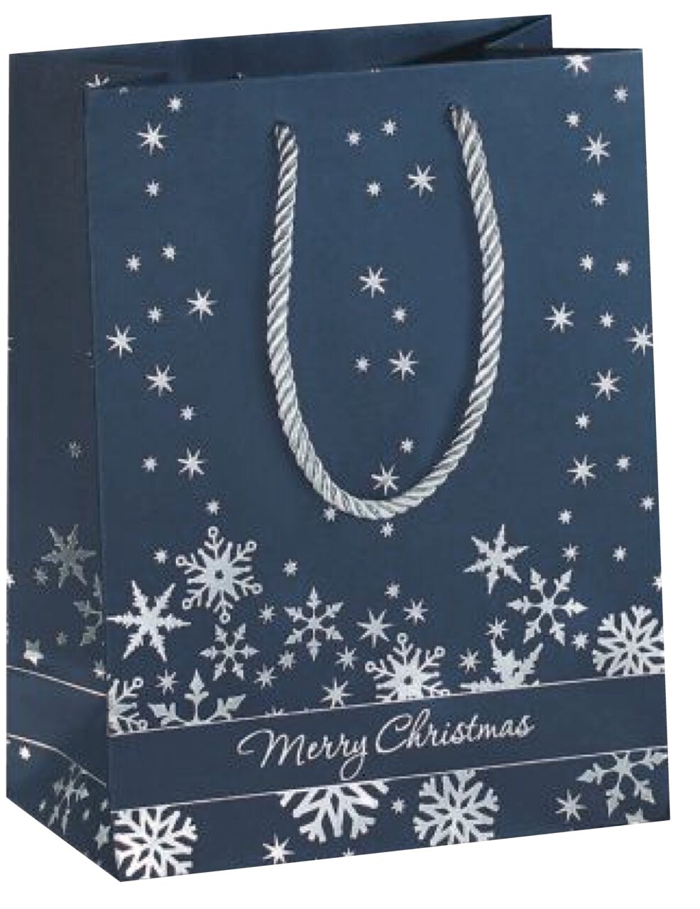 Premium Geschenktasche Small Silver Snowflakes, Silberprägung,