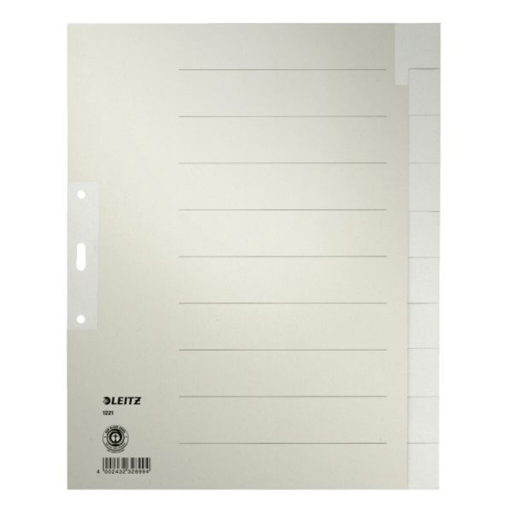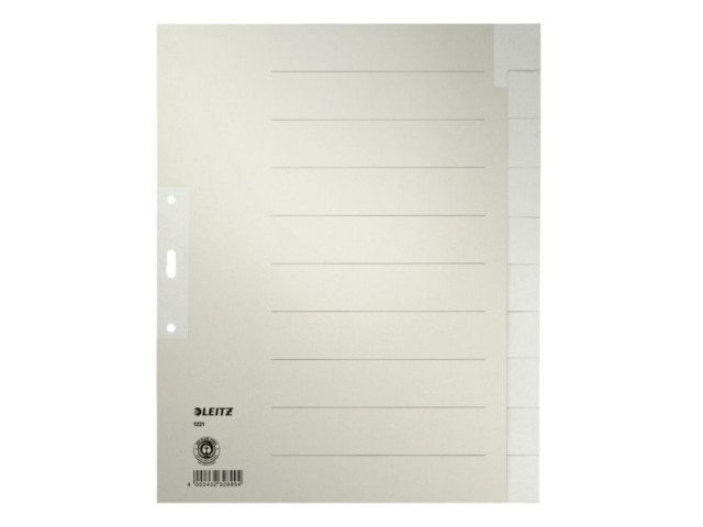 Robustes Register aus Tauenpapier 100 g/qm. Lochverstärkung des 1. Blattes. Farbe: hellgrau. Hergestellt aus hochwertig recyceltem Papier. Umweltzeichen Blauer Engel.