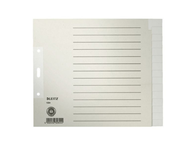 Robustes Register aus Tauenpapier 100 g/qm. Lochverstärkung des 1. Blattes. Farbe: hellgrau. Hergestellt aus hochwertig recyceltem Papier. Umweltzeichen Blauer Engel.