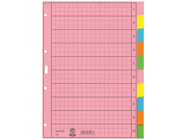 Papierregister hergestellt aus hochwertigem Recyclingpapier. Recyclingpapier 130 g/qm, mit Rasteraufdruck zum einfachen Beschriften. Lochverstärkung hinter dem ersten Blatt. Umweltzeichen Blauer Engel.