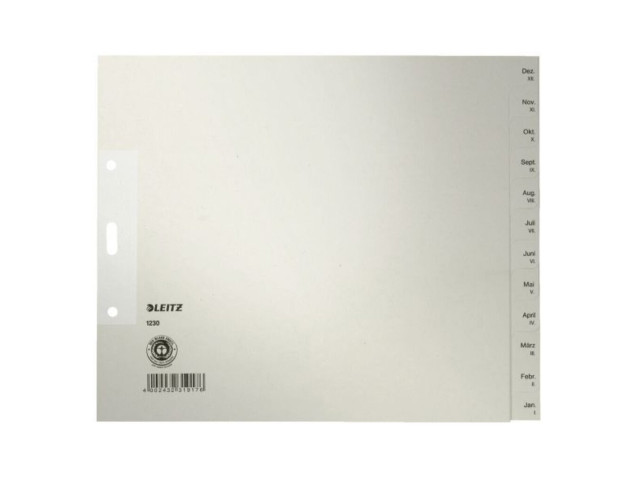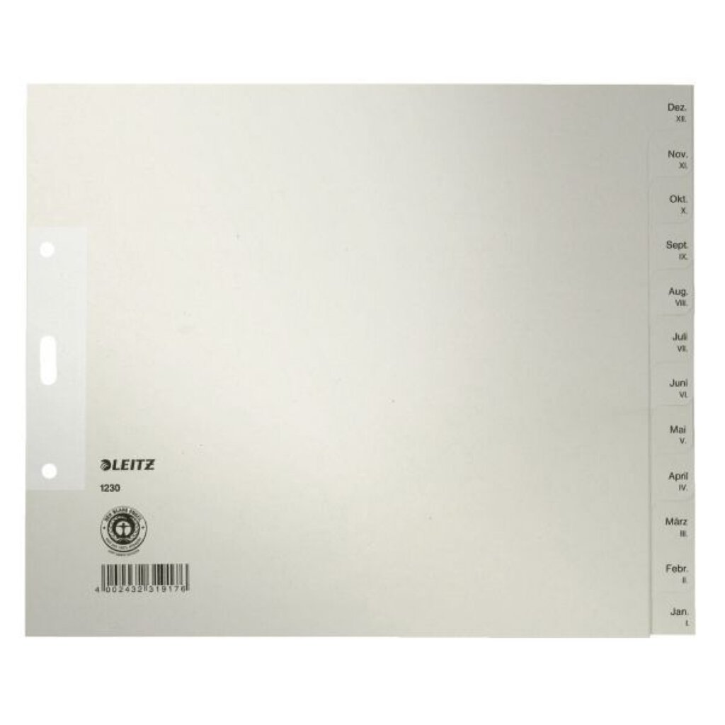 Robustes Register aus Tauenpapier 100 g/qm. Lochverstärkung des 1. Blattes. Farbe: hellgrau. Hergestellt aus hochwertig recyceltem Papier. Umweltzeichen Blauer Engel.