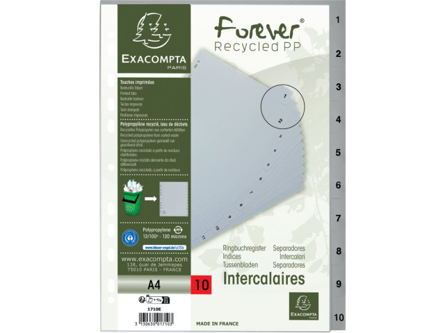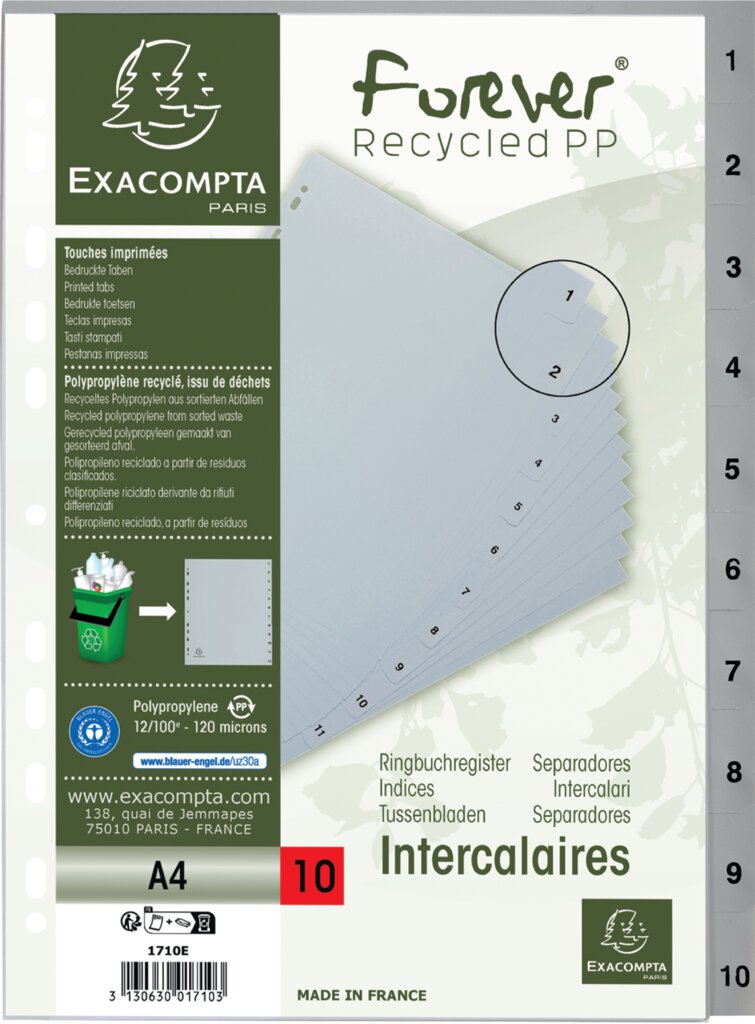 Register, PP, recycelt, 1-10, DIN A4, 10-tlg., grau