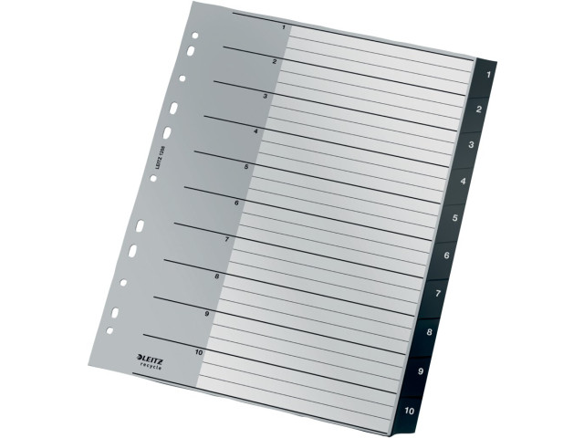 Register Recycle PP, A4, 1-10, schwarz 10 Blatt, Universallochung, Deckblatt,