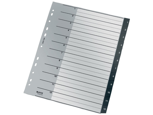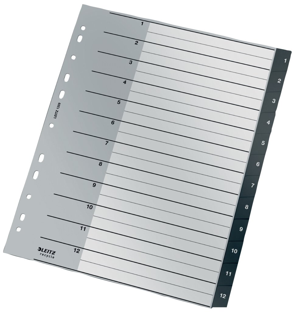 Register Recycle PP, A4, 1-12, schwarz 12 Blatt, Universallochung, Deckblatt,