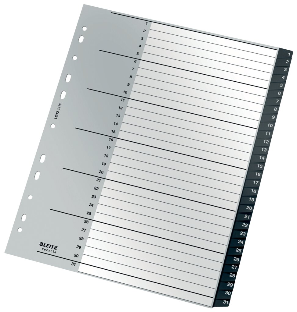 Register Recycle PP, A4, 1-31, schwarz 31 Blatt, Universallochung, Deckblatt,