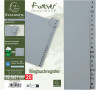 Register aus flexiblem Recycling-PP mit bedruckten Taben. Eine praktische und umweltfreundliche Lösung für die Ordnung Ihrer Unterlagen. Materialstärke: 120 my, Farbe: grau. Blauer Engel zertifiziert.