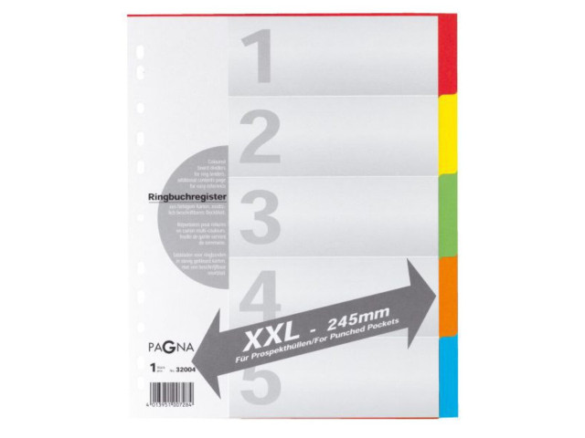 Register überbreit 5-teilig farbigem Karton, 5-farbig mit