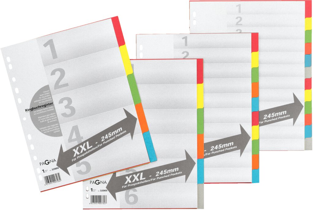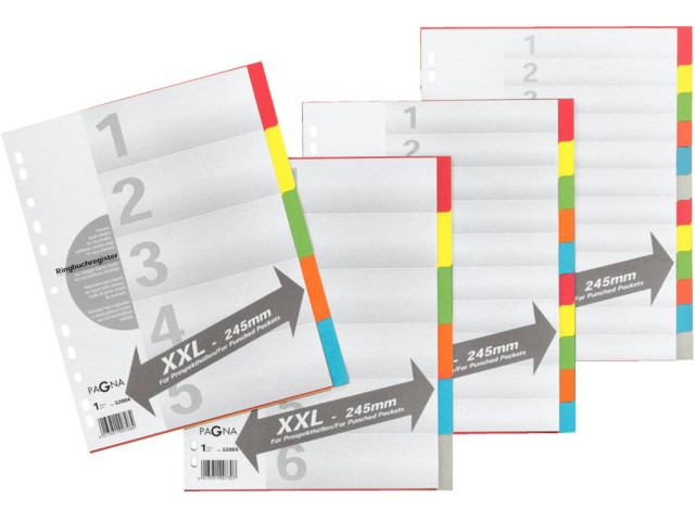 Register überbreit 6-teilig farbigem Karton, 6-farbig mit