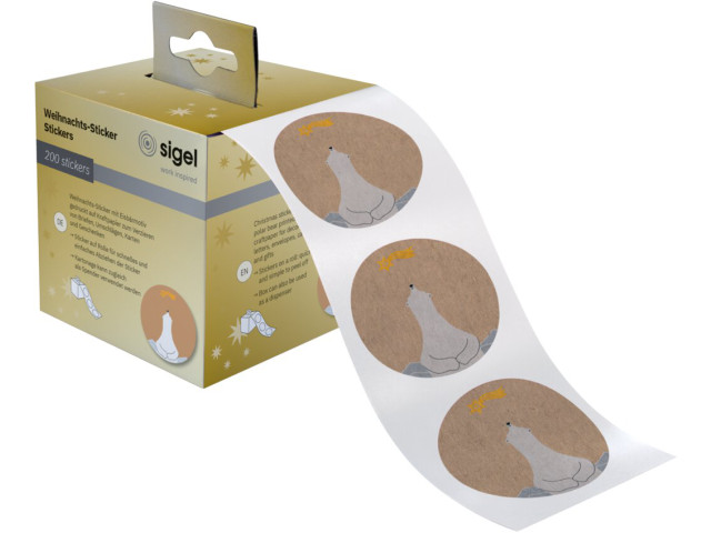 Weihnachtssticker auf Rolle. Verschiedene Motive. In einer Spenderbox.