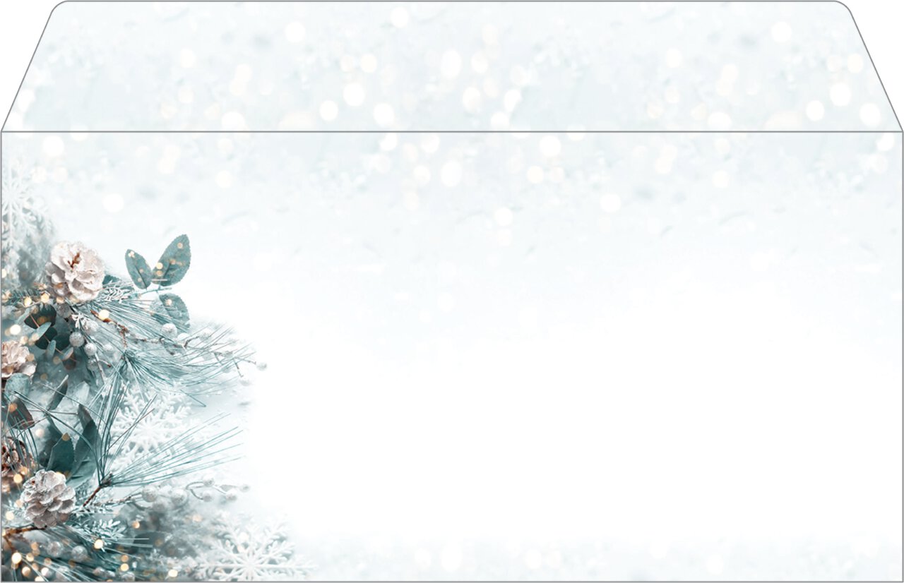Umschläge aus Spezialpapier. DIN Lang Format, 90g/qm. Gummiert. Mit Weihnachtsmotiven.