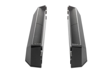 Satter Sound (jeweils 10 Watt) mit nach hinten gerichteten Audioverstärkern und Lautsprechern, die einzeln an der Rückseite des HP LD4200 Bildschirms angebracht werden können.
