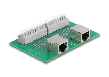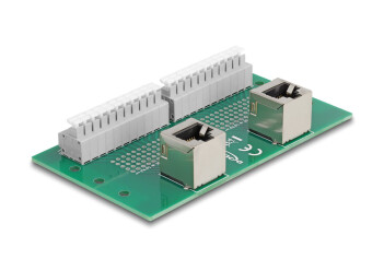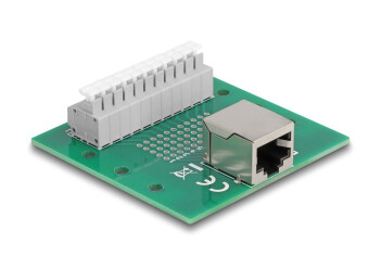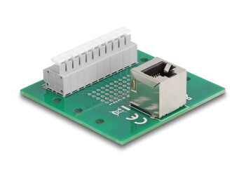 Dieser Adapter von Delock kann zum Anschluss diverser Netzwerkgeräte verwendet werden. Über den Terminalblock werden Litzen mit abisolierten Enden werkzeugfrei angeschlossen.