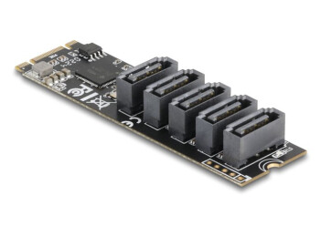 Dieser M.2 zu SATA Kontroller von Delock erweitert das System um fünf SATA Anschlüsse. An diesen Kontroller können verschiedene Geräte wie z. B. SSDs, Festplatten, DVD-Laufwer ...