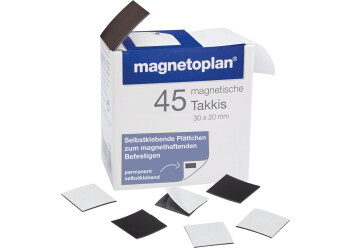 Spenderbox mit 45 selbstklebenden Takkis. Aus der Spenderbox lassen sich die magnethaftenden Plättchen beliebig entnehmen und rückseitig aufkleben. Zur sauberen, unsichtbaren ...