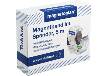 Handabroller mit 5 Meter Magnetklebeband. Mit dem Spender lässt sich die gewünschte Länge an Magnetklebeband beliebig abtrennen und rückseitig aufkleben. Zur sauberen, unsicht ...