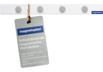magnetowand®-Leiste zum Befestigen von Notizen, Memos, etc. Befestigung: selbstklebend auf glatten Untergründen. Farbe: weiß.