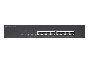 Energieeffizienter PoE‑Verteiler für Büroumgebungen In Büros, Besprechungsräumen oder Home Offices bindet der LANCOM GS-1208P bis zu acht Netzwerkgeräte wie Access Points, IP ...