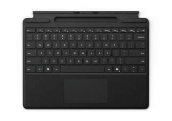 Surface Pro Keyboard mit Stiftaufbewahrung Diese perfekte Premium-Tastatur mit großem Glas-Touchpad und die neue Copilot-Taste für KI-Leistung auf Knopfdruck, bietet Ihnen Vi ...